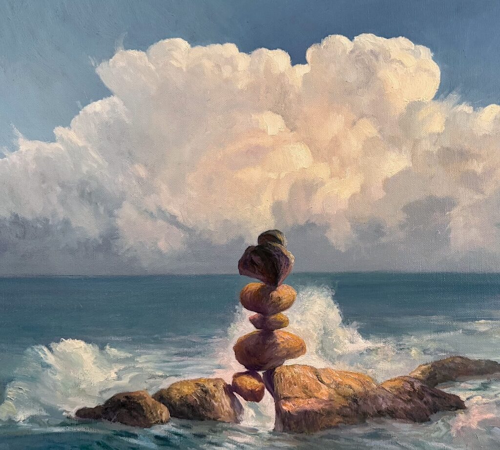 Masoud Yasami’s paintings can be seen as a contemporary exploration of themes reminiscent of the dramatic realism found in Caravaggio’s work. Like Caravaggio, Yasami employs a mastery of light and shadow to create depth and emotional intensity in his art. His intuitive approach invites viewers to engage with the nature of reality itself, challenging their perceptions and inviting them to look beyond the surface.